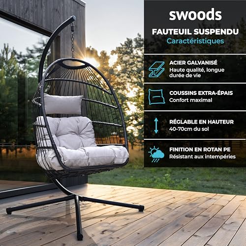 Transformez vos moments de détente avec la chaise suspendue Swoods, le compagnon idéal pour l’intérieur comme l’extérieur !