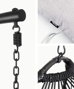 Grâce à sa conception pliable, ce fauteuil suspendu est facile à ranger lorsqu’il n’est pas utilisé, idéal pour les espaces réduits ou pour l’emporter en vacances à la plage, au parc ou en camping. De plus, la hauteur du fauteuil peut être ajustée aisément grâce à la chaîne et au mousqueton inclus.