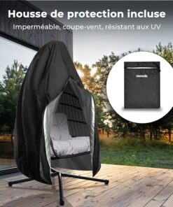 Protégez votre fauteuil suspendu Swoods des intempéries avec la housse de protection fournie. Fabriquée en matériau durable et imperméable, cette housse protège votre fauteuil de la pluie, du gel, de la saleté et de la poussière, vous permettant de profiter de votre fauteuil toute l’année sans souci.